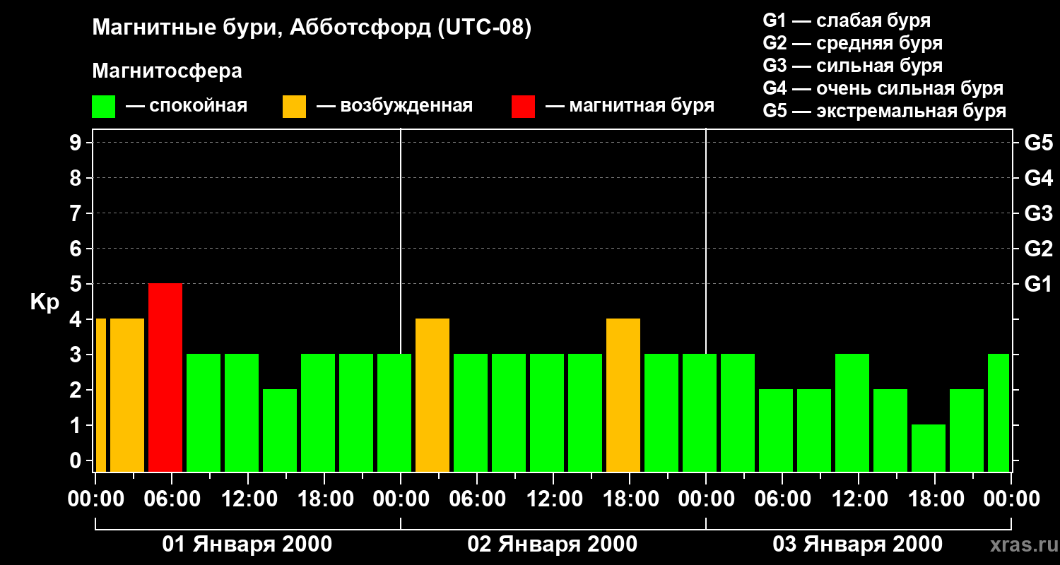 Магнитные бури в Абботсфорде 3 января 2000 года