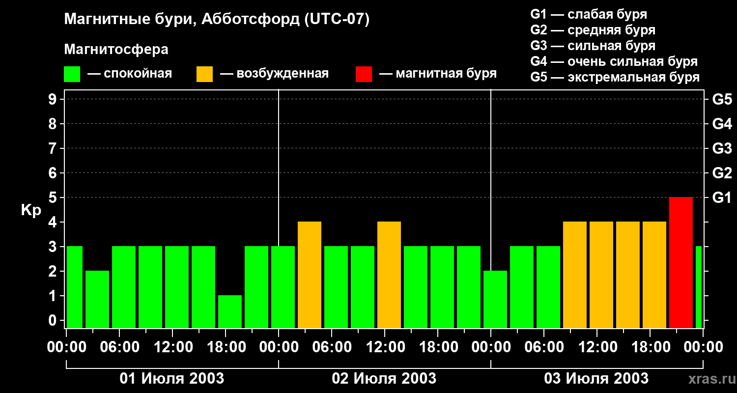 Магнитные бури в Абботсфорде 3 июля 2003 года