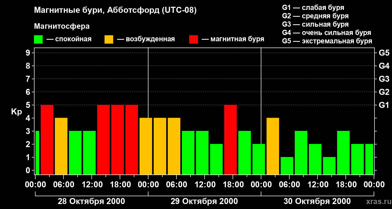 Магнитные бури в Абботсфорде 30 октября 2000 года