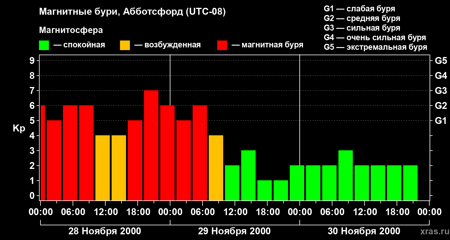 Магнитные бури в Абботсфорде 30 ноября 2000 года