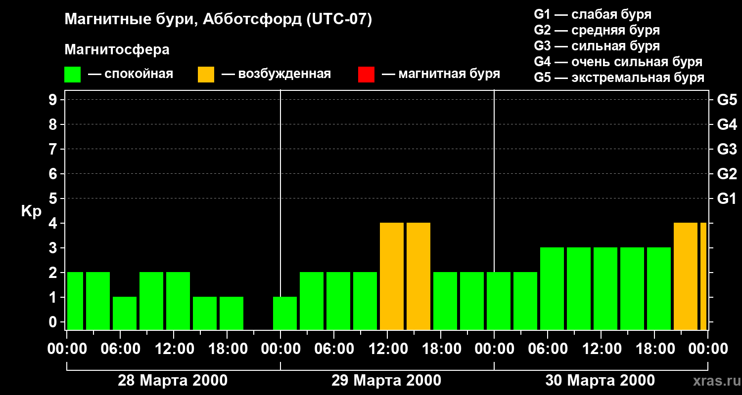 Магнитные бури в Абботсфорде 30 марта 2000 года