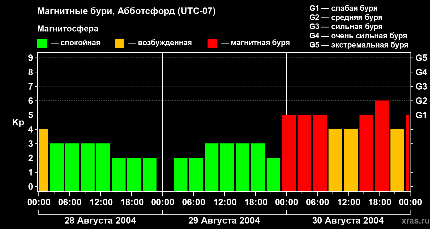 Магнитные бури в Абботсфорде — 30 августа 2004 года