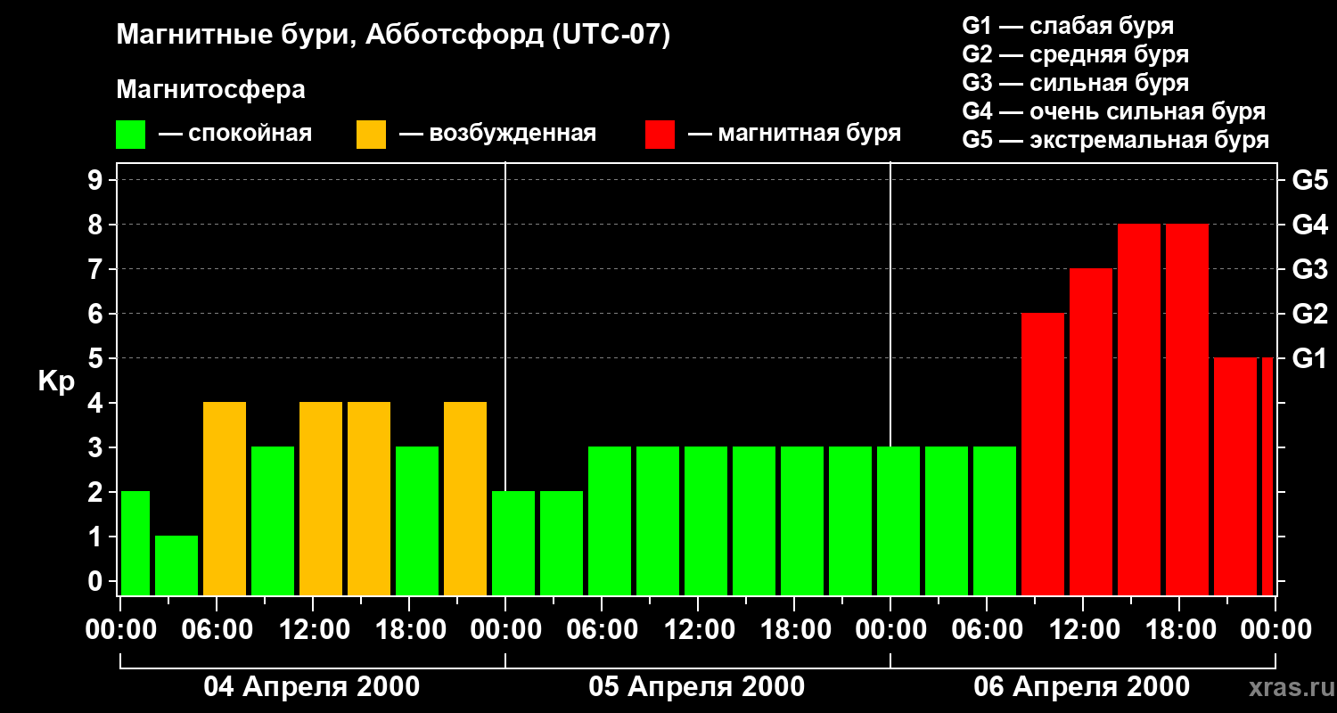 Магнитные бури в Абботсфорде в апреле 2000 года