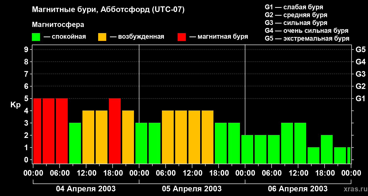Магнитные бури в Абботсфорде в апреле 2003 года
