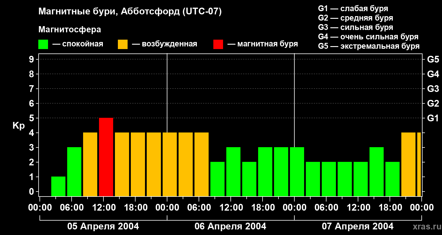 Магнитные бури в Абботсфорде 7 апреля 2004 года