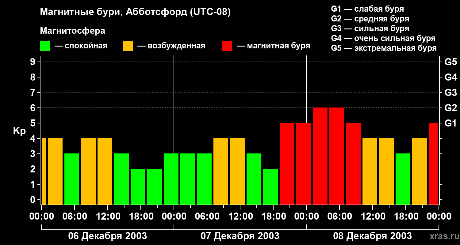 Магнитные бури в Абботсфорде 8 декабря 2003 года