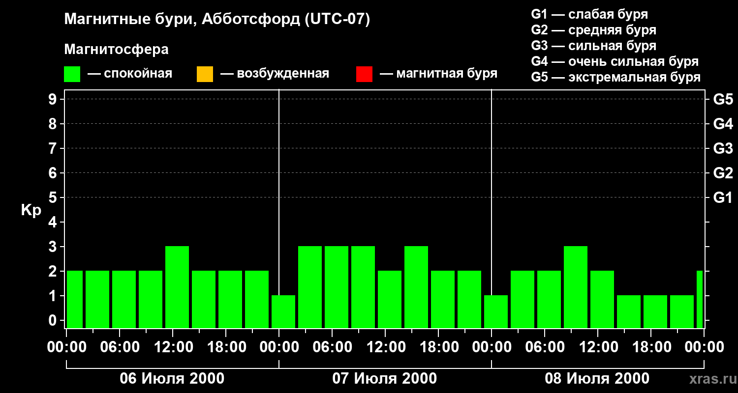 Магнитные бури в Абботсфорде 8 июля 2000 года