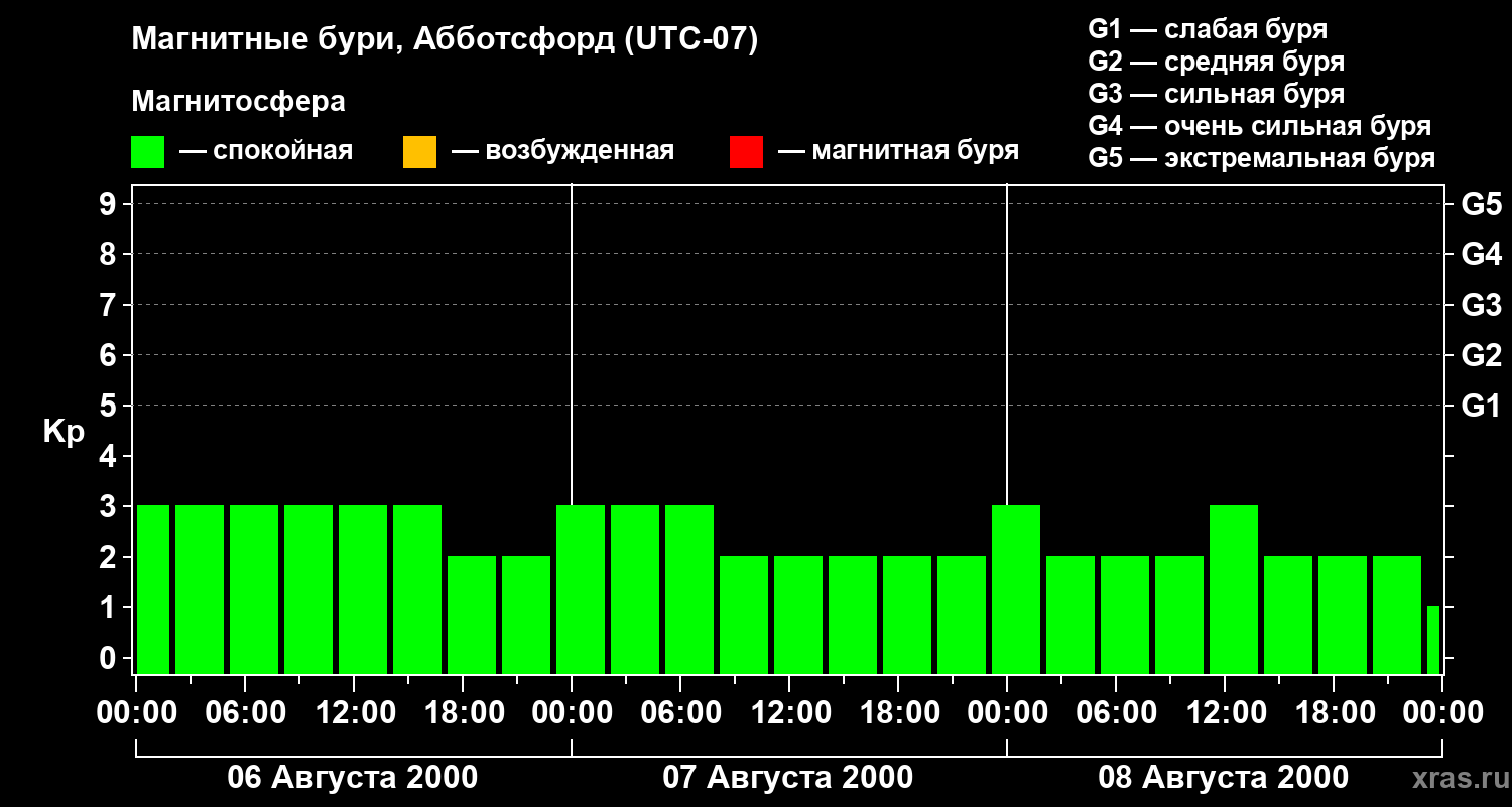 Магнитные бури в Абботсфорде 8 августа 2000 года