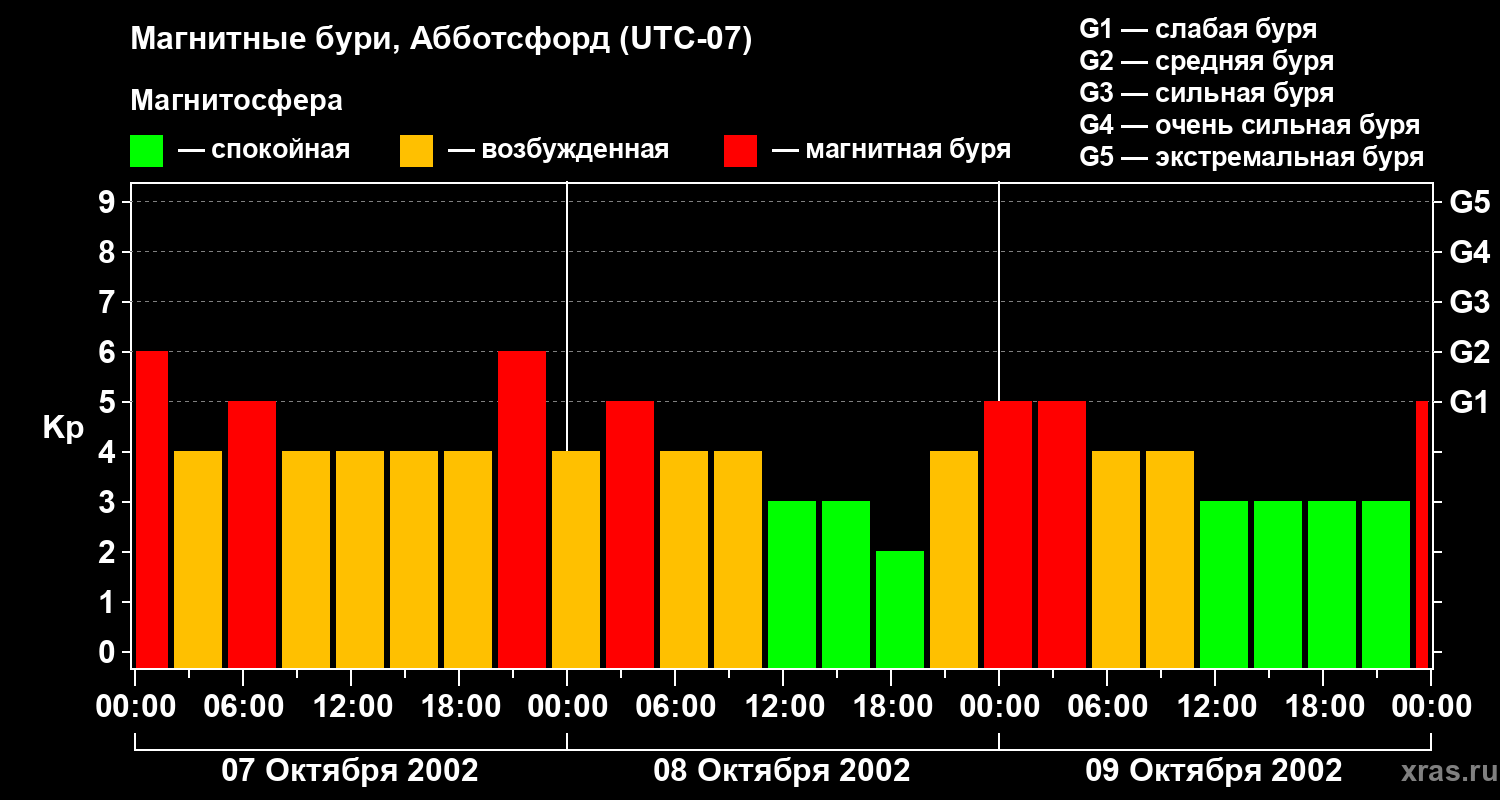 Магнитные бури в Абботсфорде — 9 октября 2002 года