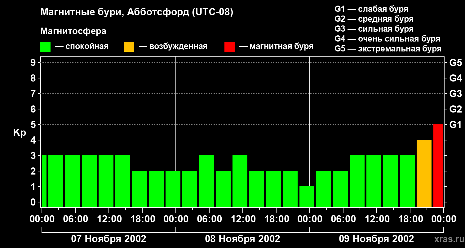 Магнитные бури в Абботсфорде 9 ноября 2002 года