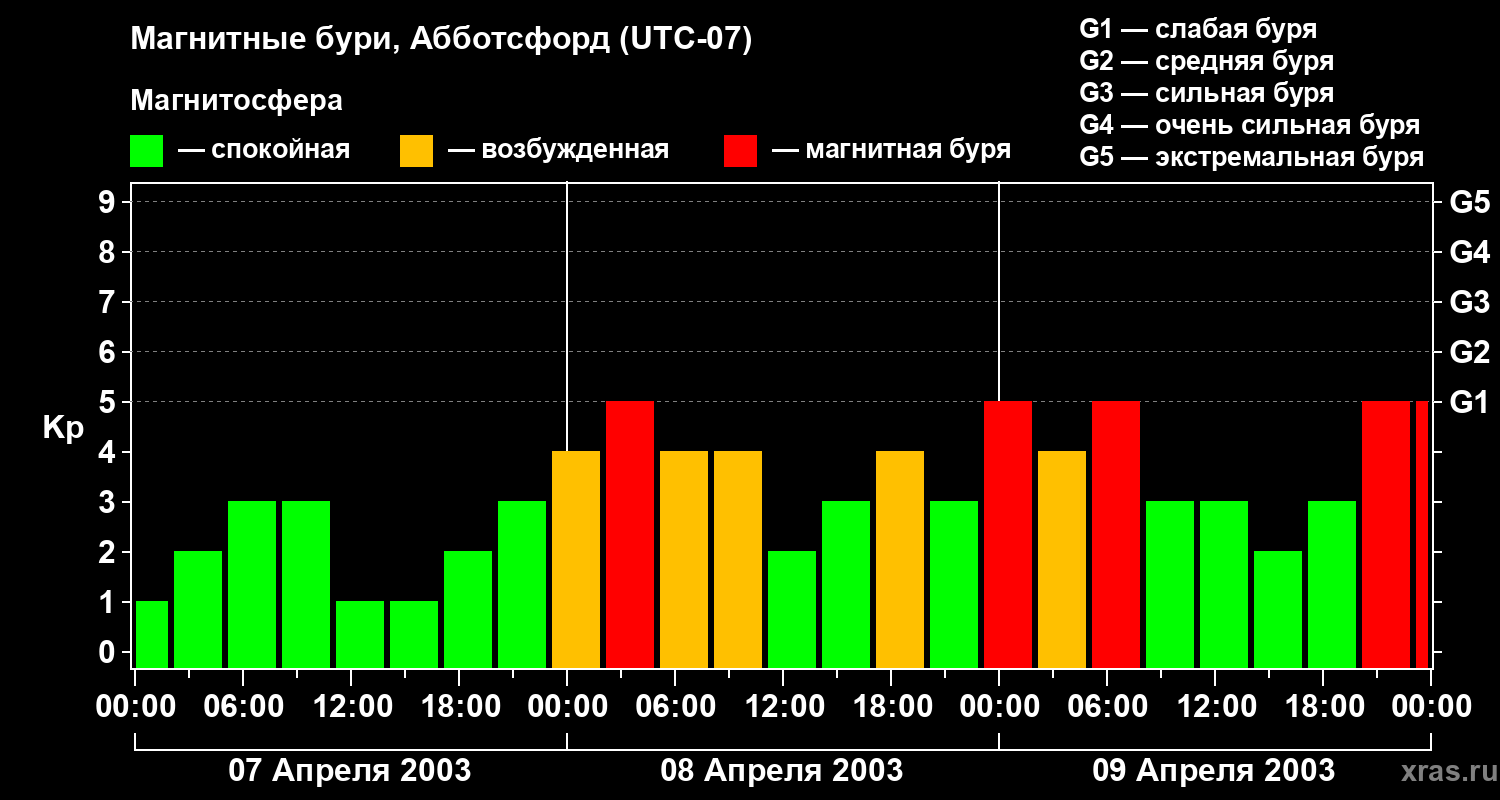 Магнитные бури в Абботсфорде 9 апреля 2003 года