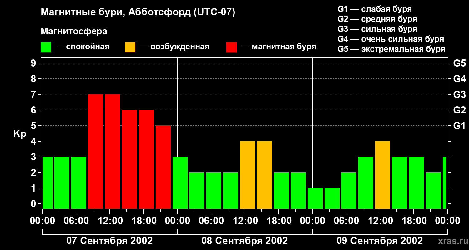 Магнитные бури в Абботсфорде 9 сентября 2002 года