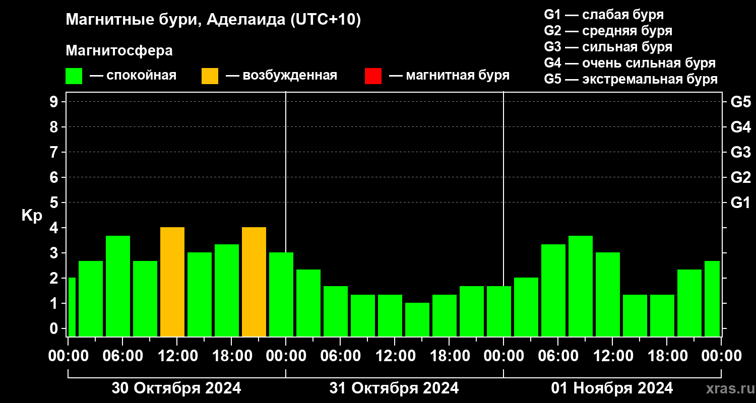 Магнитные бури в Аделаиде 1 ноября 2024 года
