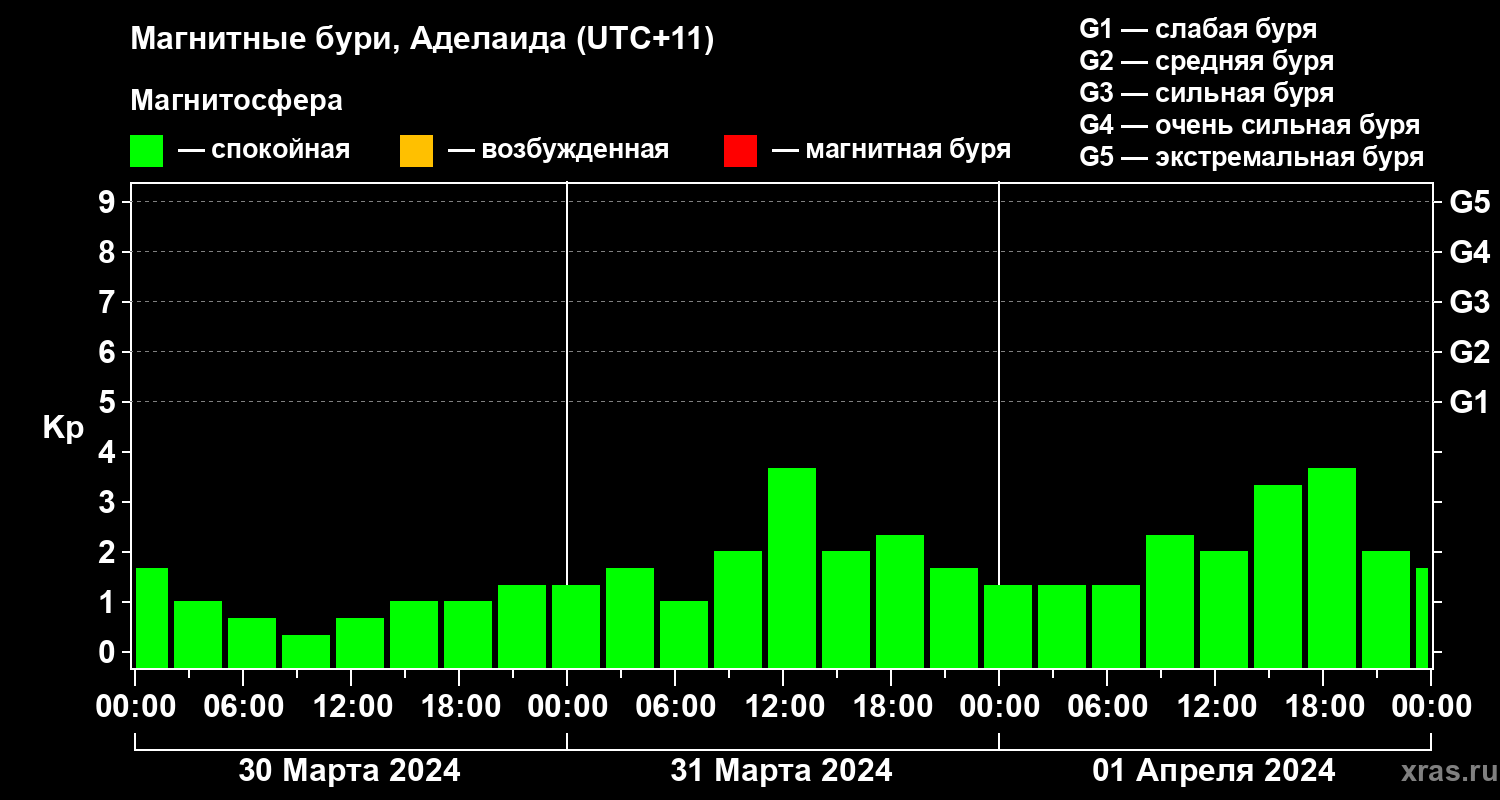 Магнитные бури в Аделаиде 1 апреля 2024 года