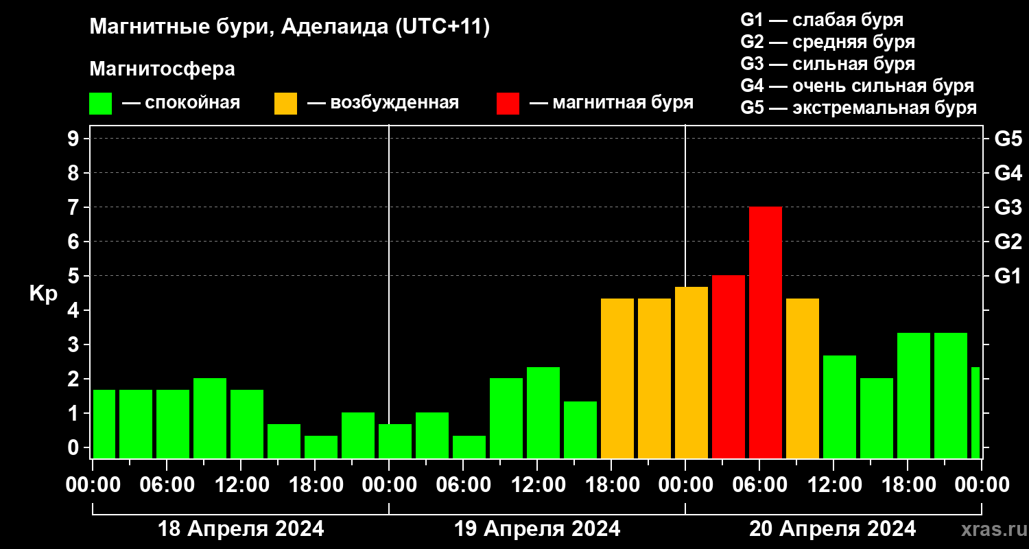 Магнитные бури в Аделаиде 20 апреля 2024 года