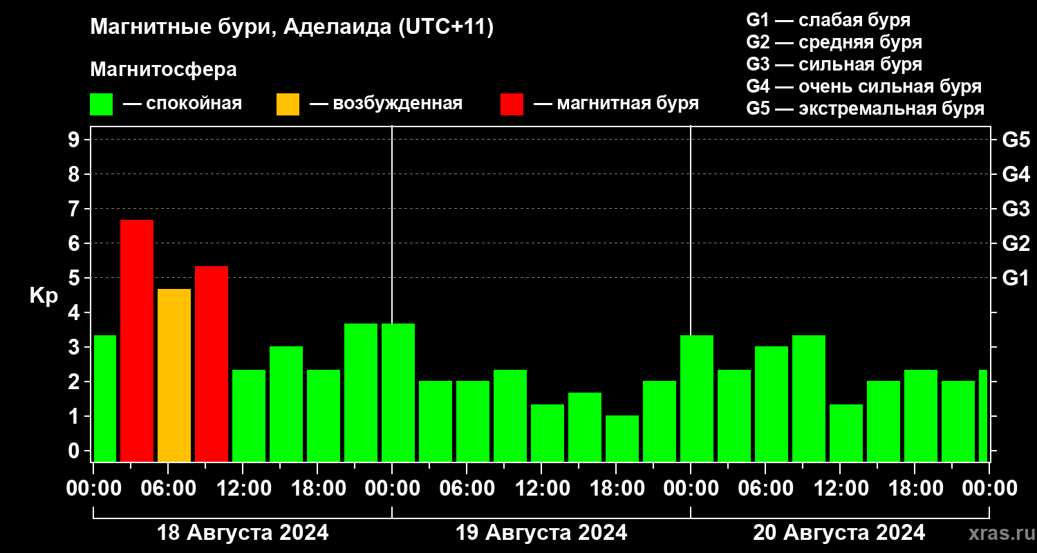 Магнитные бури в Аделаиде 20 августа 2024 года