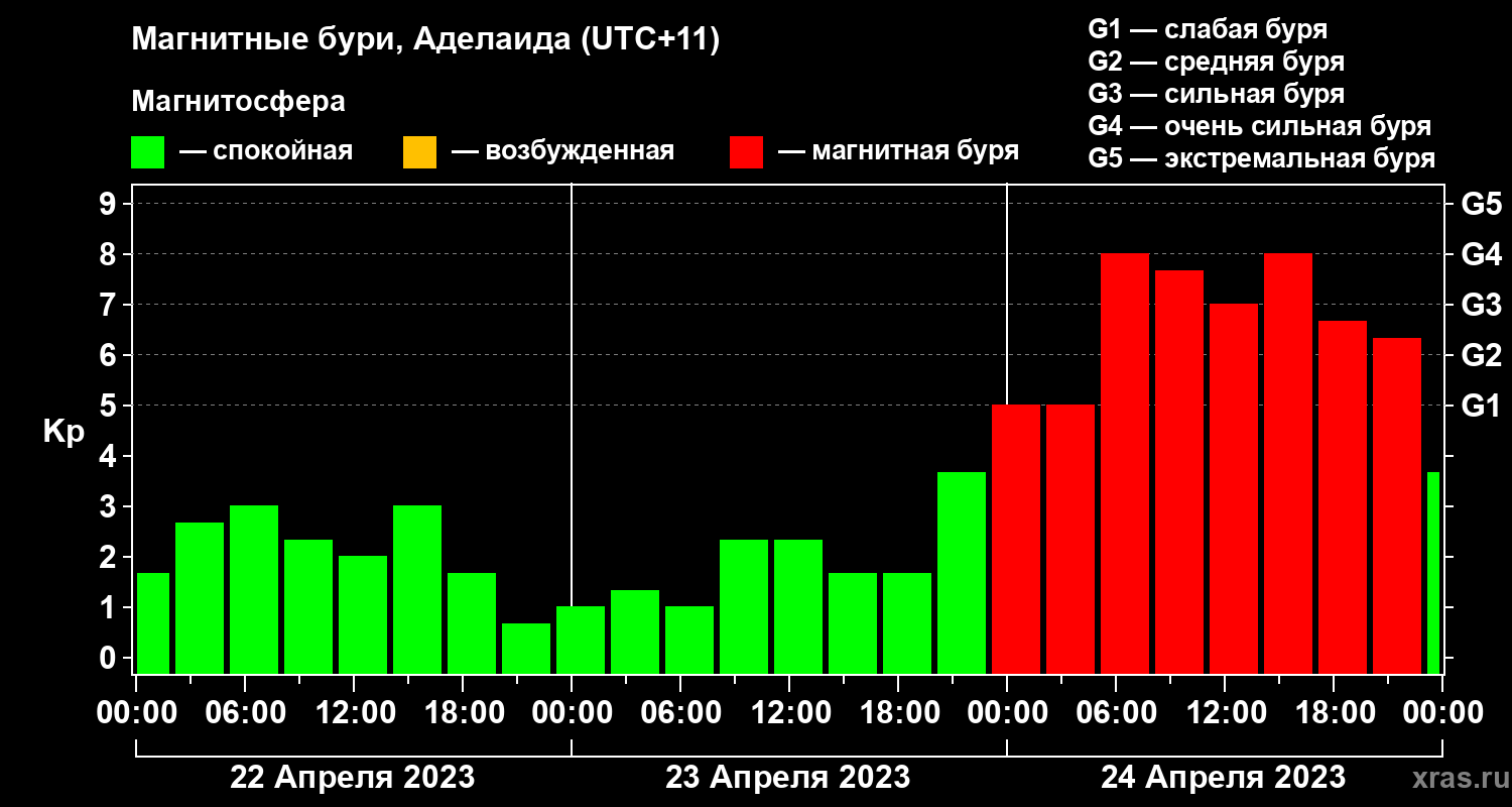 Магнитные бури в Аделаиде 24 апреля 2023 года