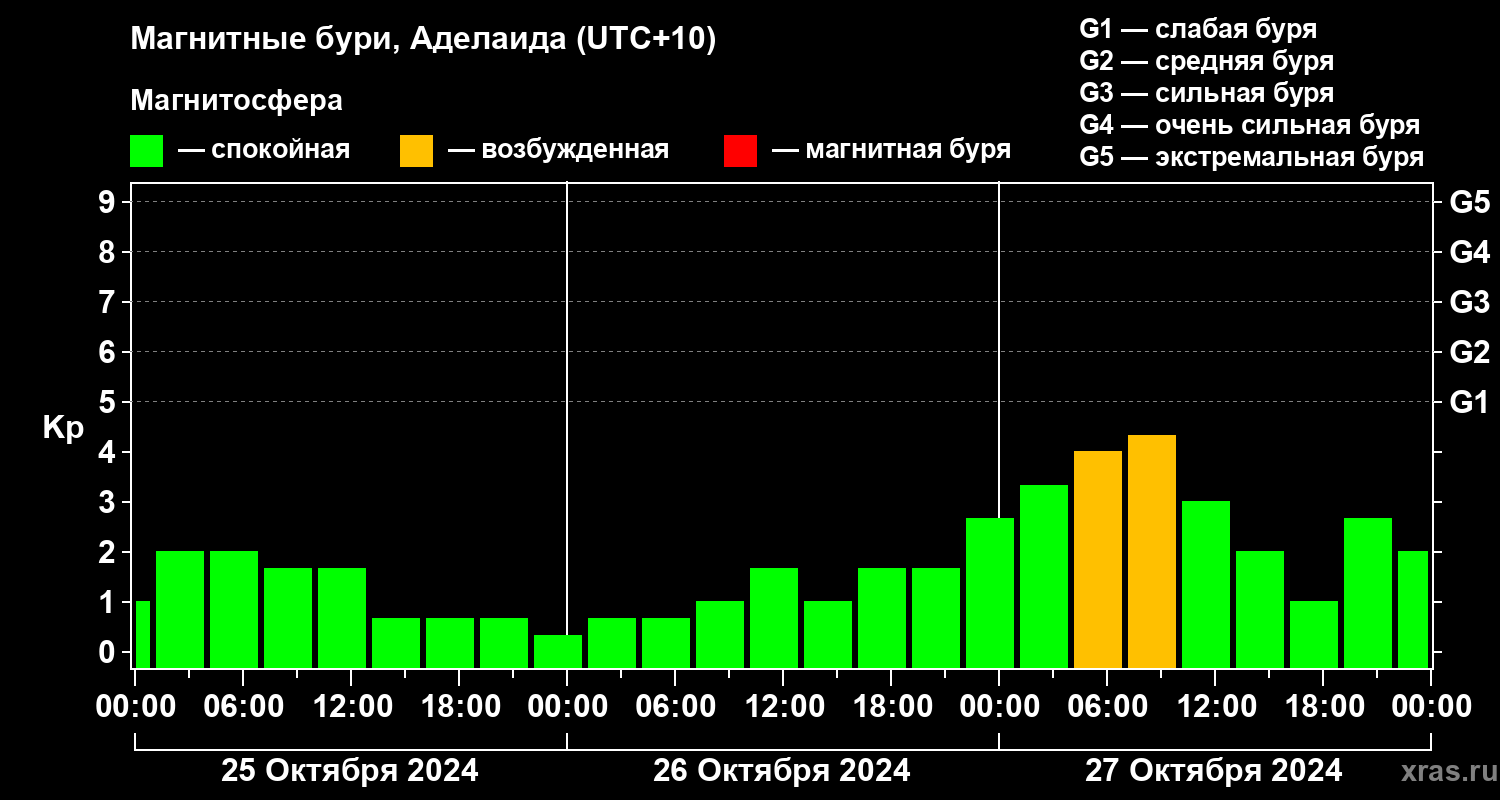 Магнитные бури в Аделаиде 27 октября 2024 года