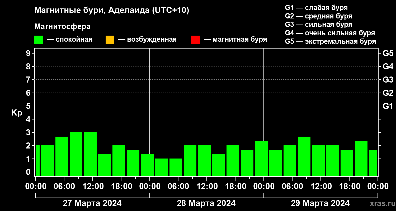 Магнитные бури в Аделаиде 29 марта 2024 года