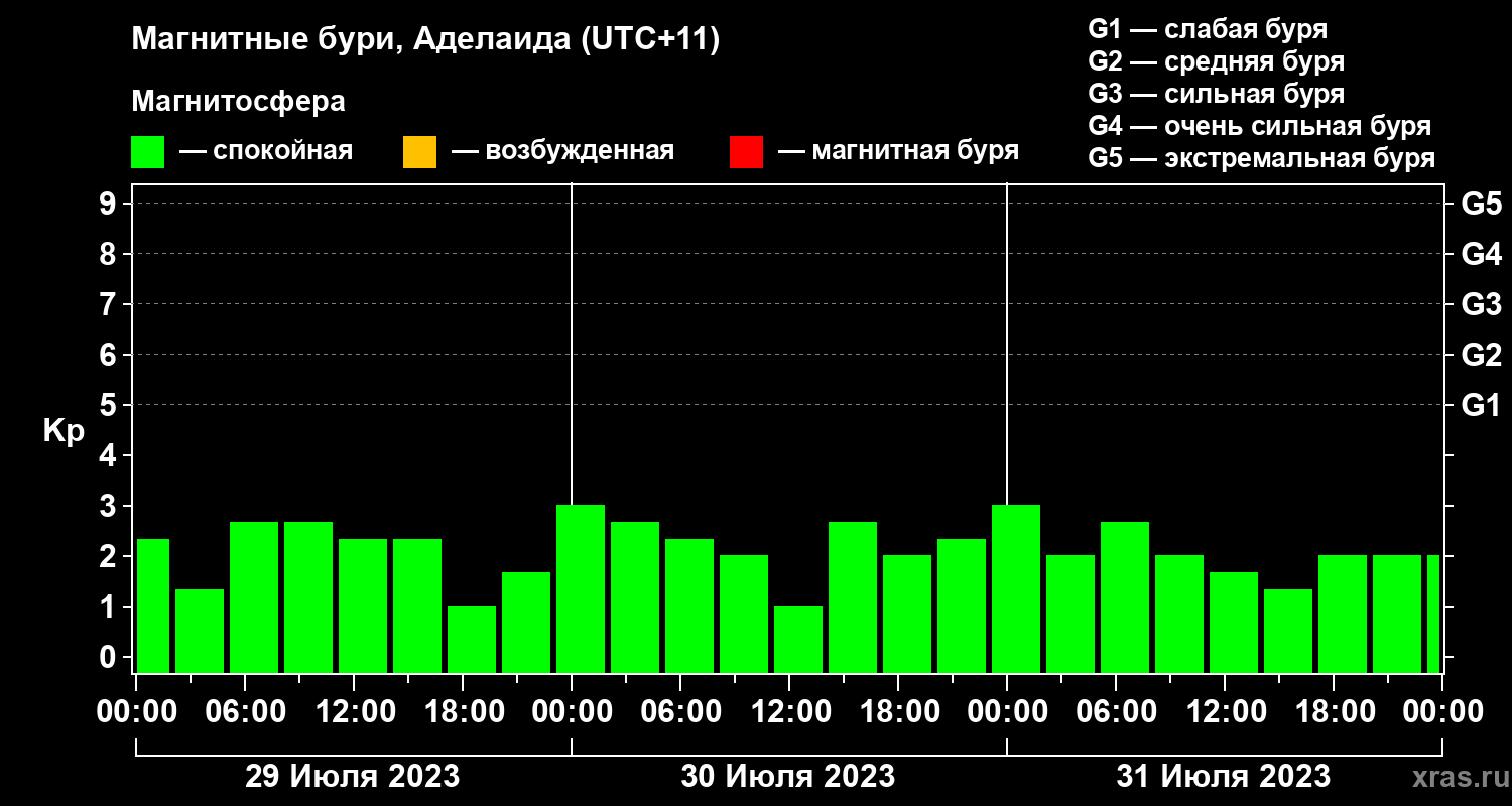Магнитные бури в Аделаиде 31 июля 2023 года
