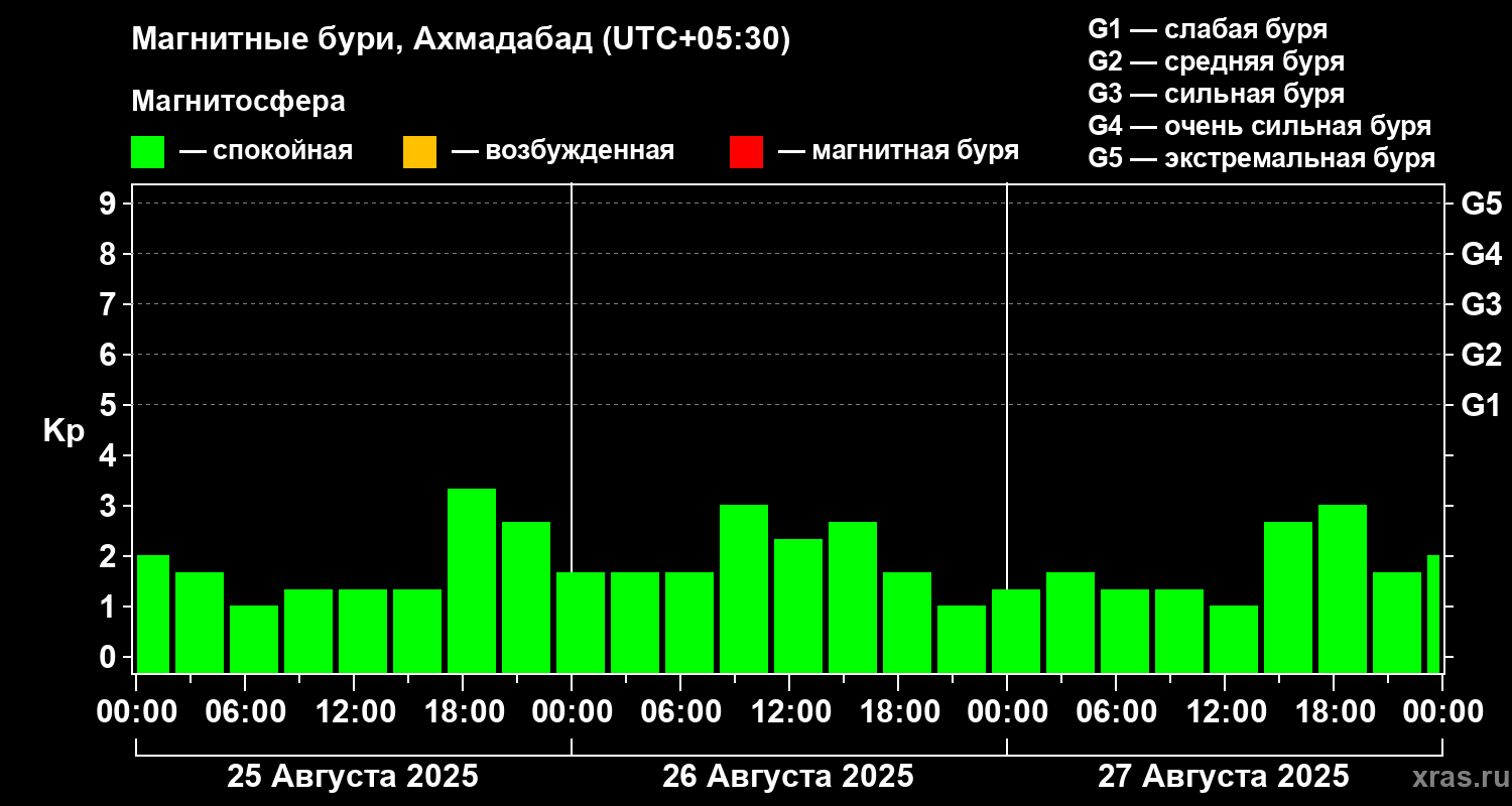 Магнитные бури в Ахмадабаде — 27 августа 2025 года