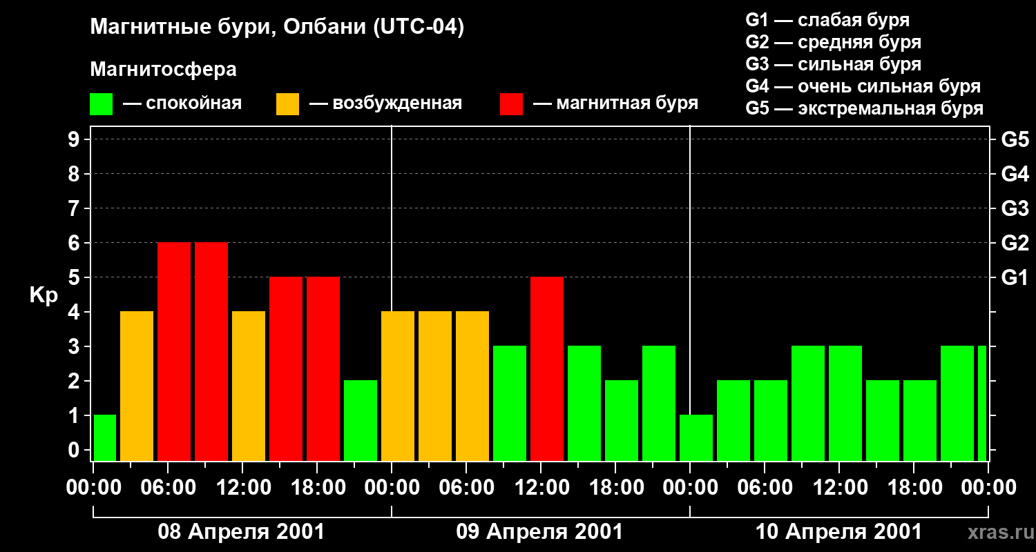 Магнитные бури Олбани 10 апреля 2001 года