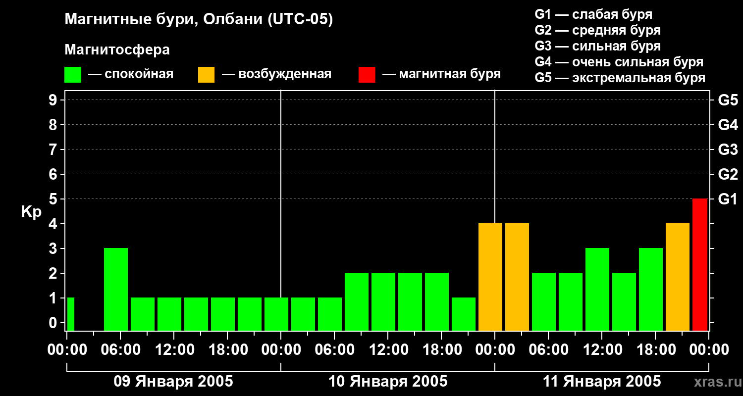 Магнитные бури Олбани 11 января 2005 года