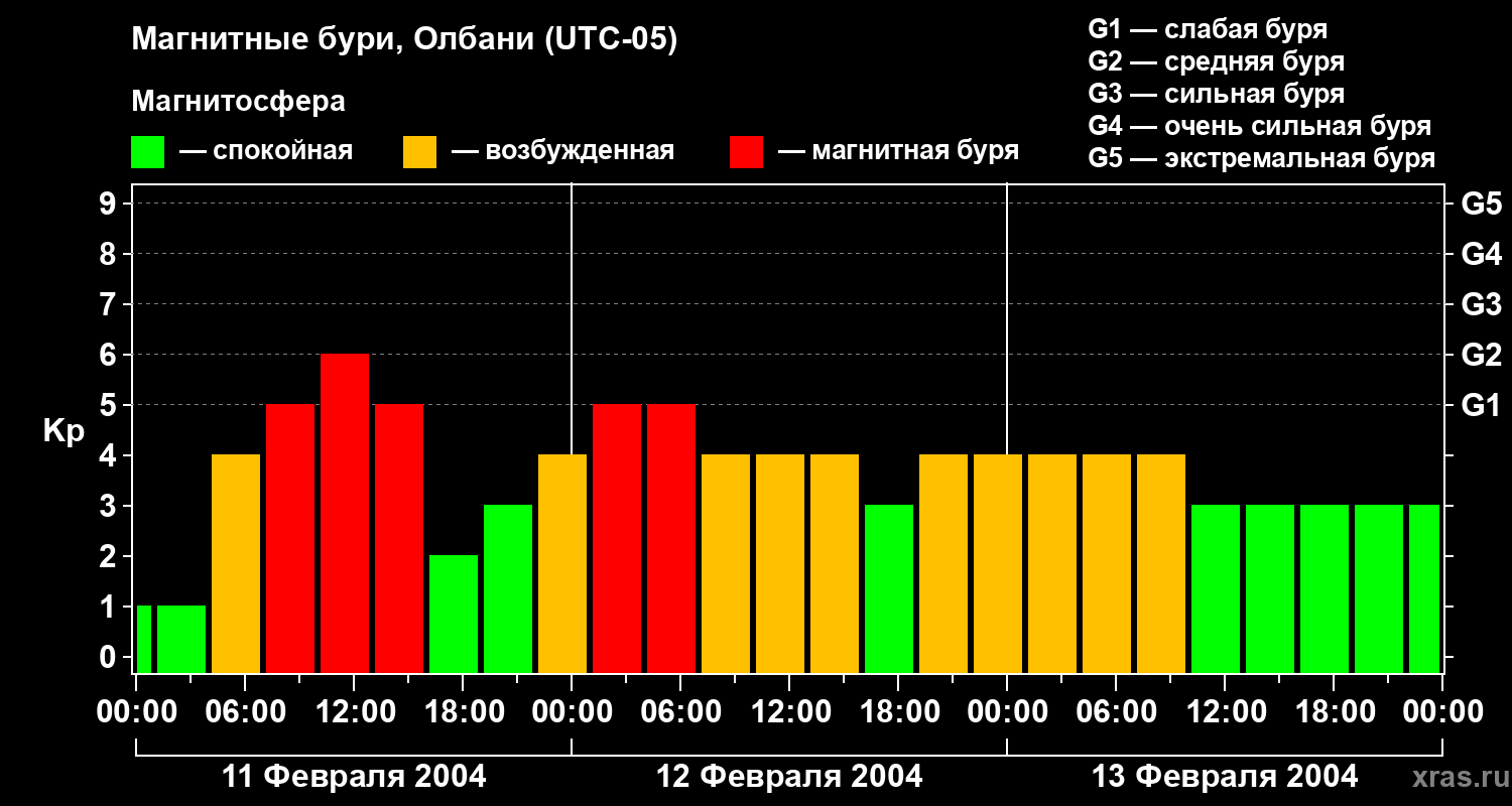 Магнитные бури Олбани 13 февраля 2004 года