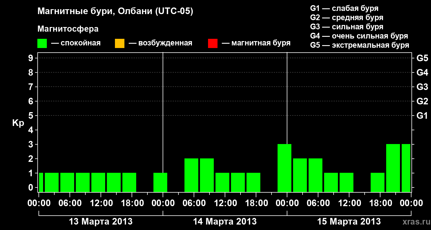 Магнитные бури Олбани 15 марта 2013 года