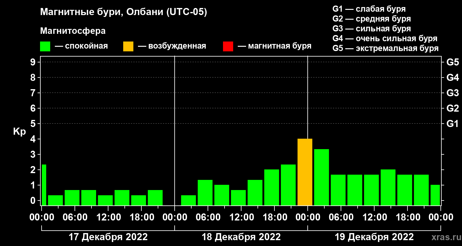 Изменения геомагнитного индекса Kp с 17 по 19 декабря 2022 года для средних широт