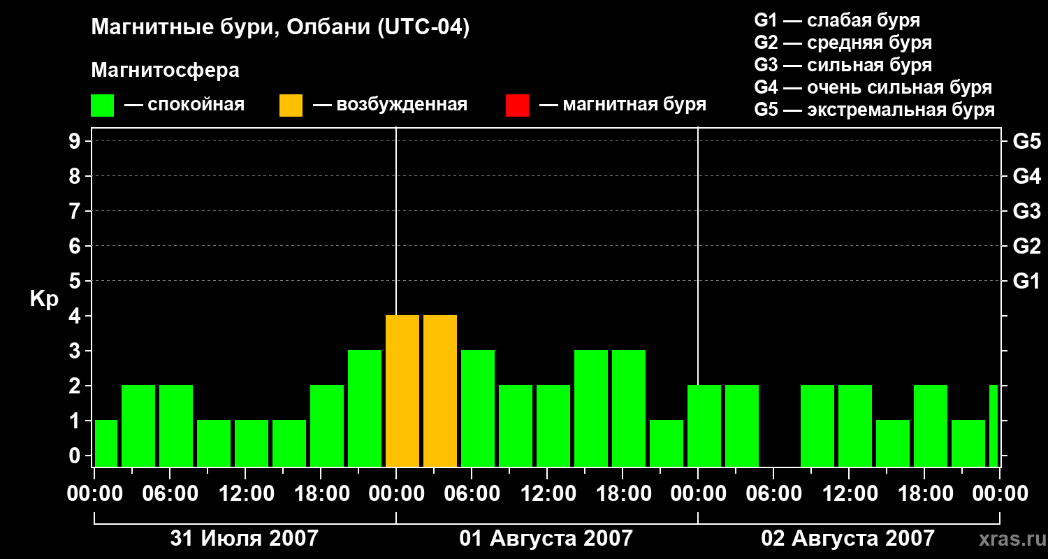 Магнитные бури Олбани 2 августа 2007 года