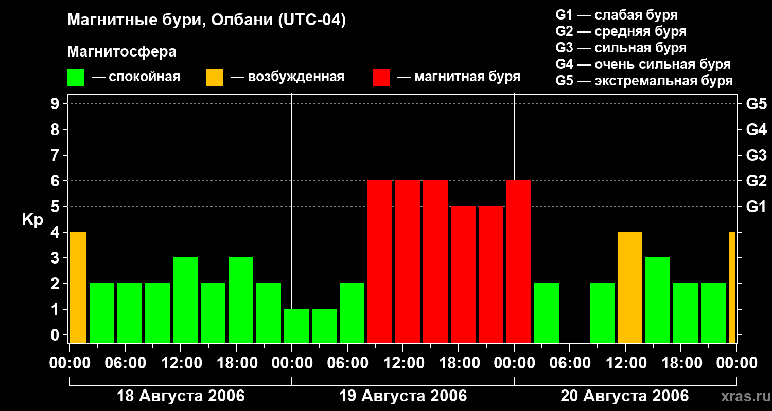 Магнитные бури Олбани 20 августа 2006 года