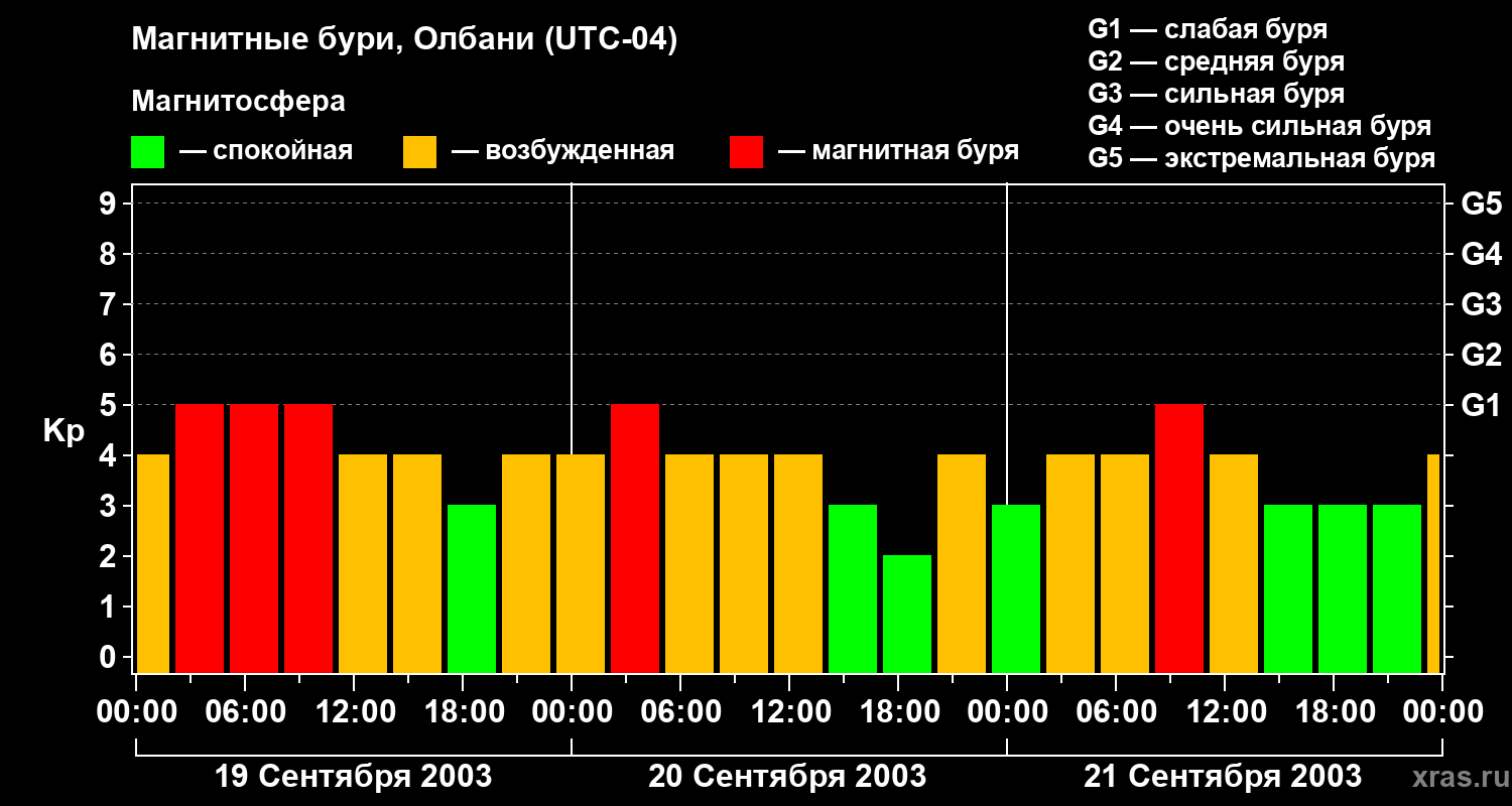 Магнитные бури Олбани 21 сентября 2003 года