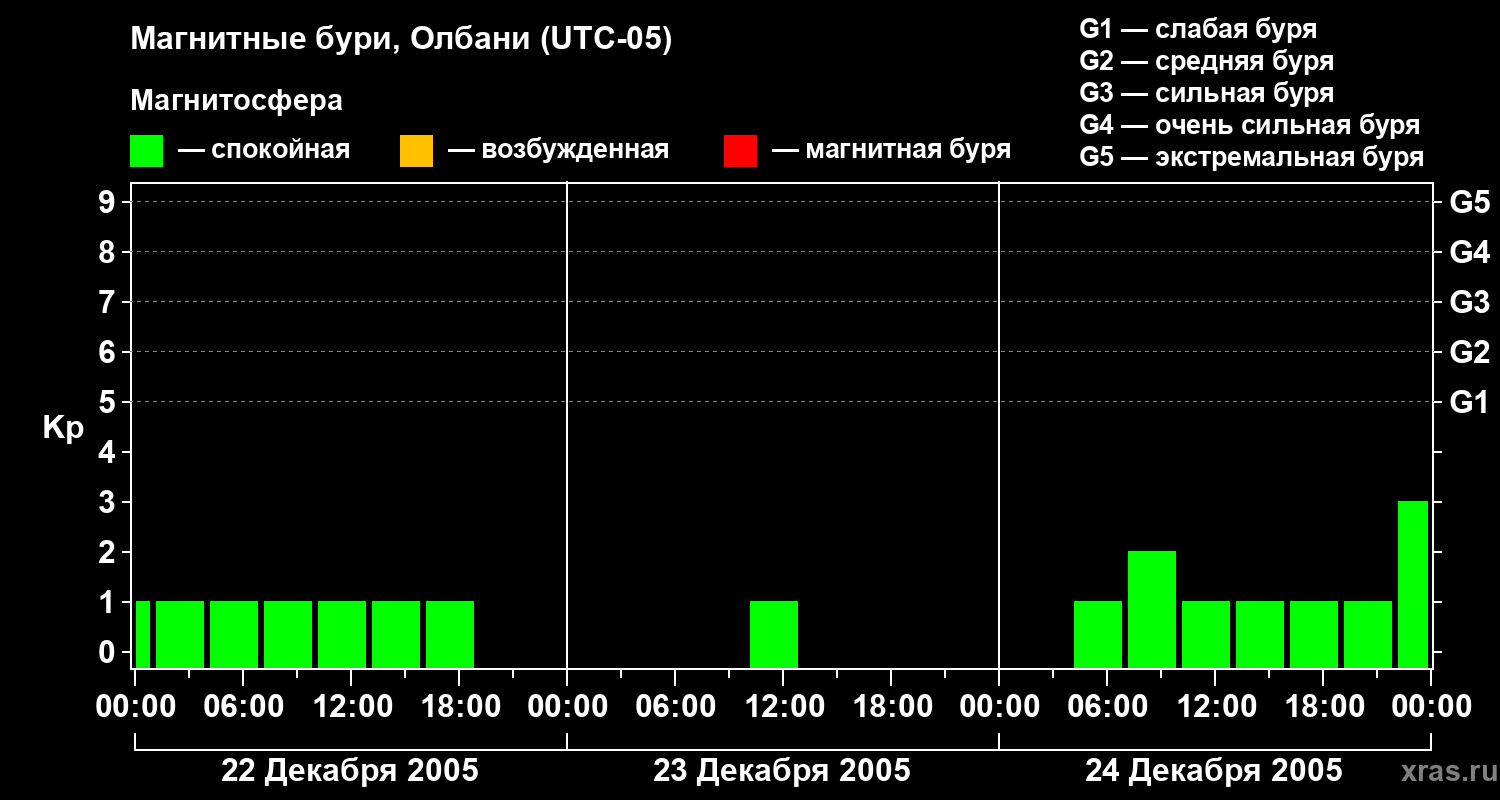 Магнитные бури Олбани 24 декабря 2005 года