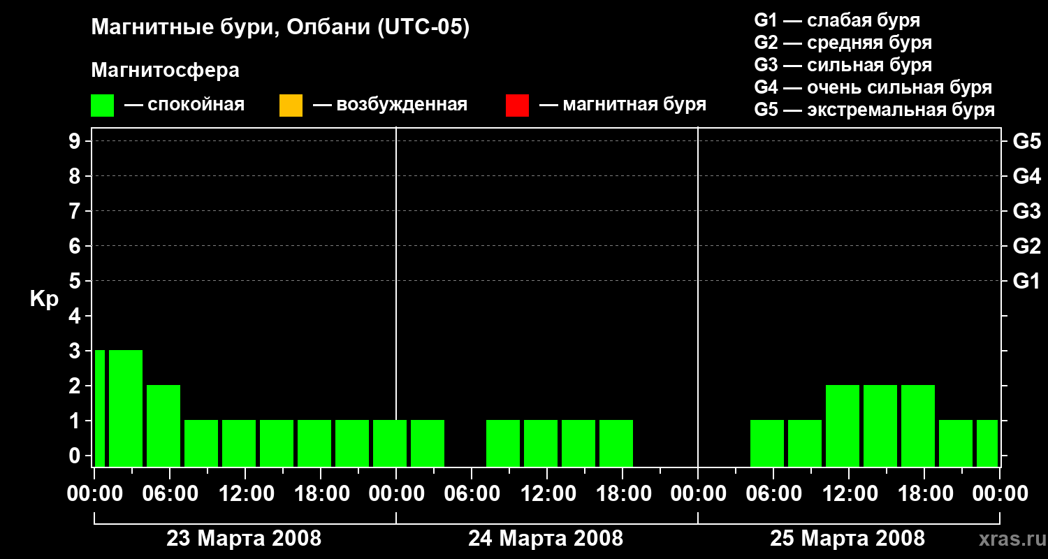 Магнитные бури Олбани 25 марта 2008 года