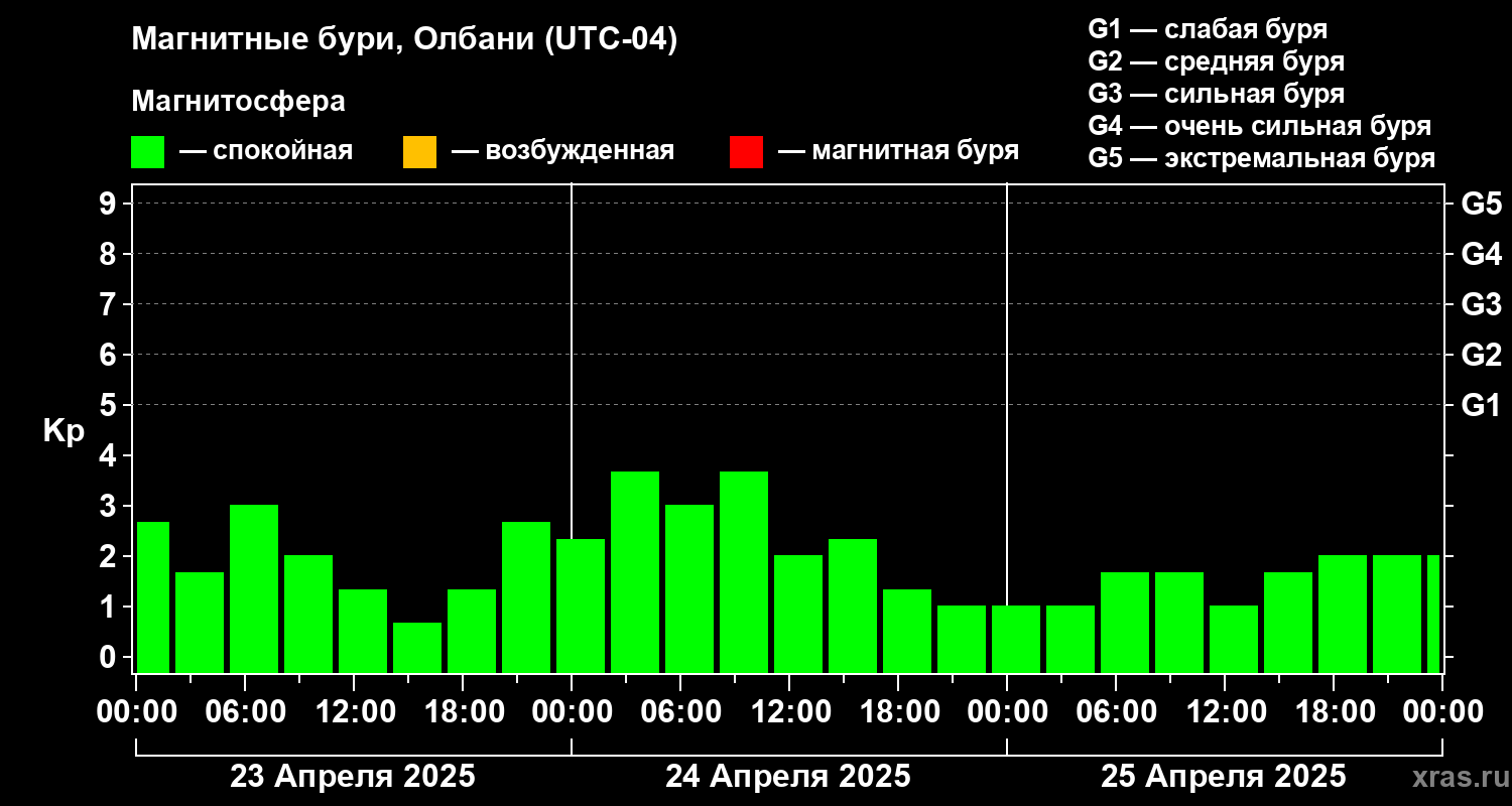 Магнитные бури Олбани 25 апреля 2025 года
