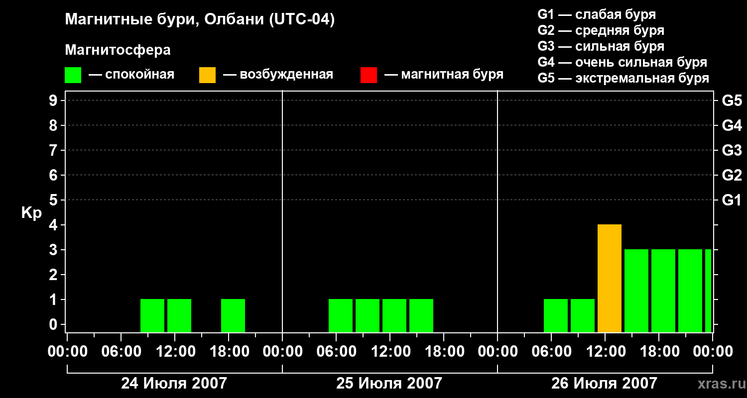 Магнитные бури Олбани 26 июля 2007 года