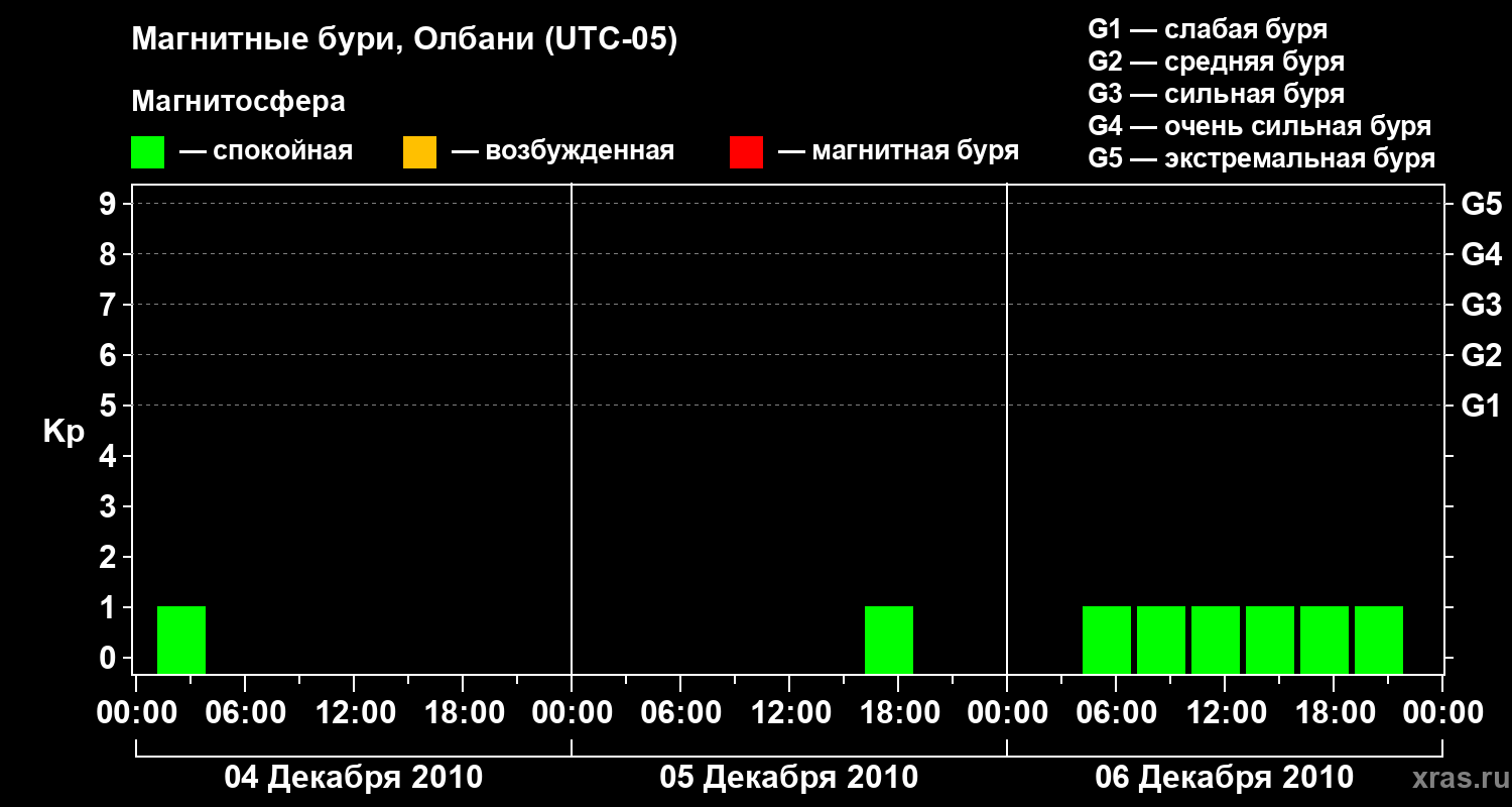 Изменения геомагнитного индекса Kp с 4 по 6 декабря 2010 года для средних широт