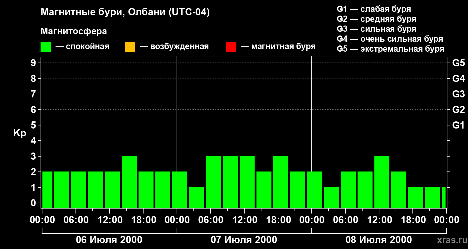 магнитосфера Земли была спокойной (Kp = 3.00)