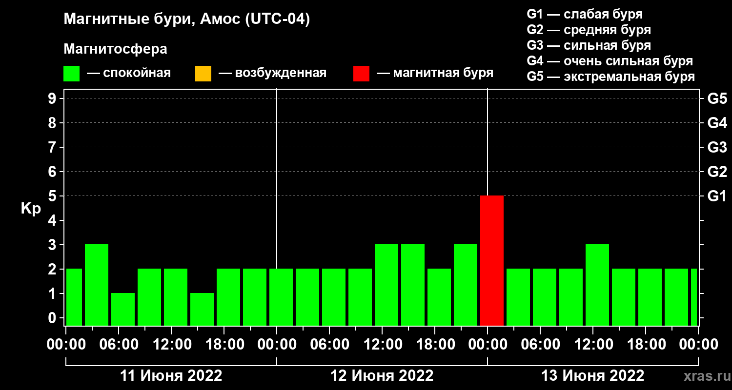 Магнитные бури в Амосе 13 июня 2022 года