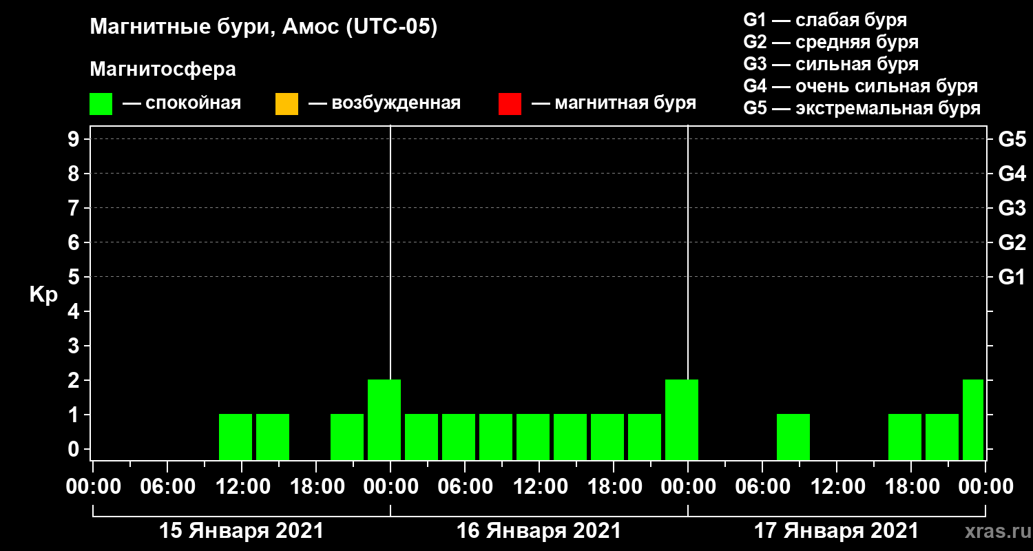 Изменения геомагнитного индекса Kp с 15 по 17 января 2021 года для средних широт