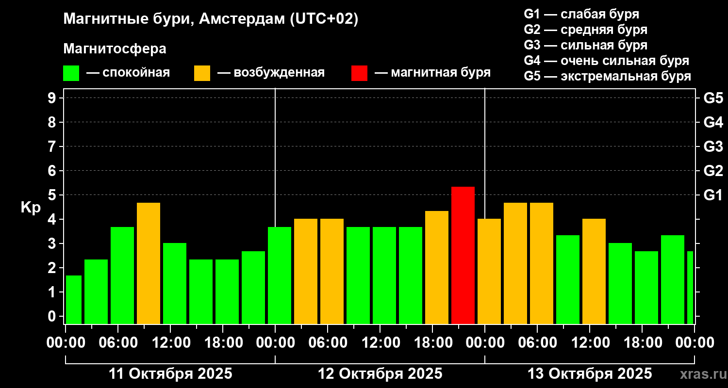 Магнитные бури в Амстердаме 13 октября 2025 года