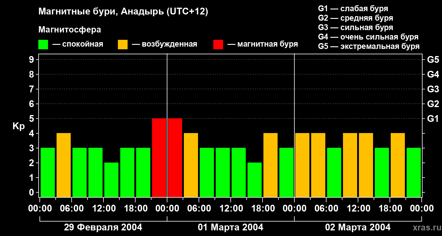 Магнитные бури в Анадыре — 2 марта 2004 года