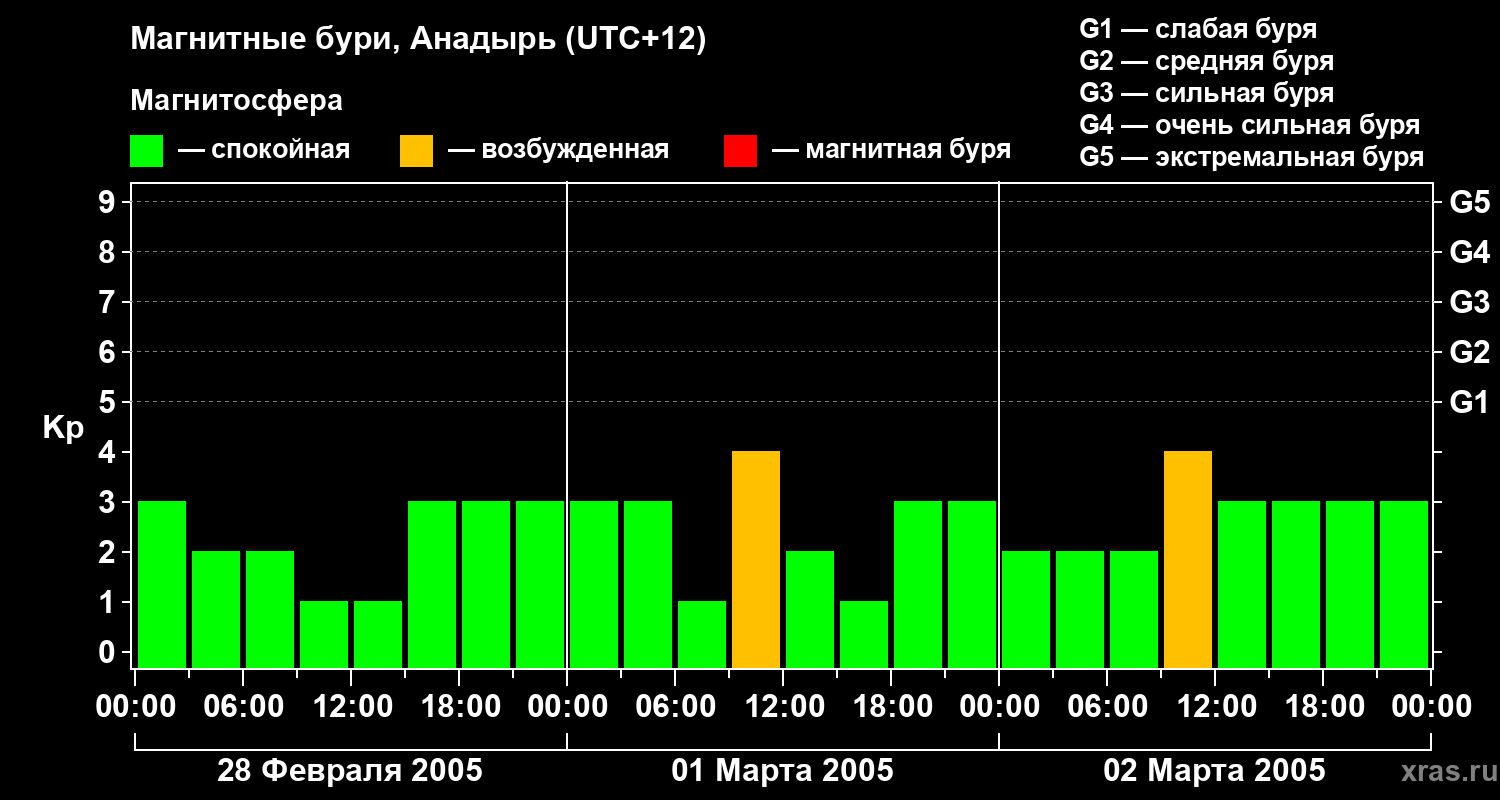Магнитные бури в Анадыре — 2 марта 2005 года