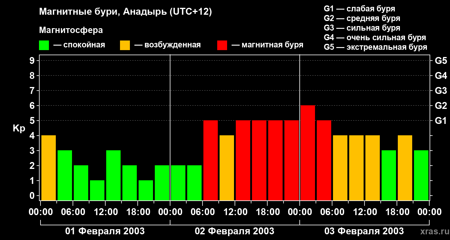 Магнитные бури в Анадыре — 3 февраля 2003 года