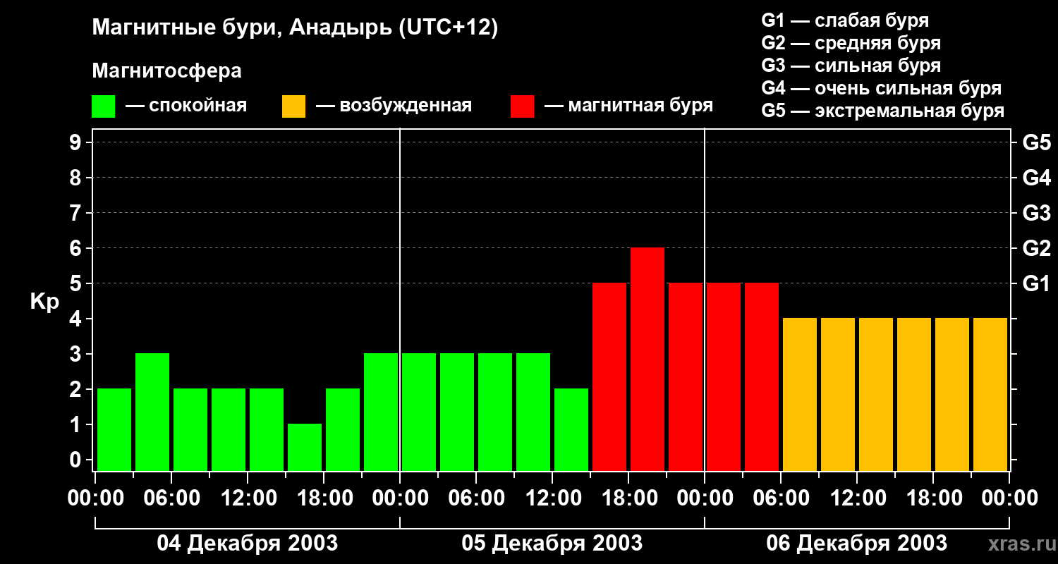 Магнитные бури в Анадыре — 6 декабря 2003 года