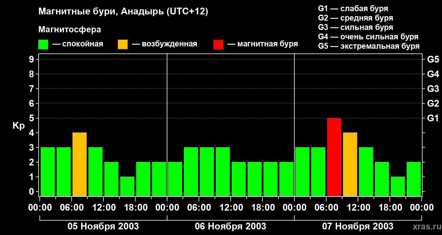 Магнитные бури в Анадыре — 7 ноября 2003 года