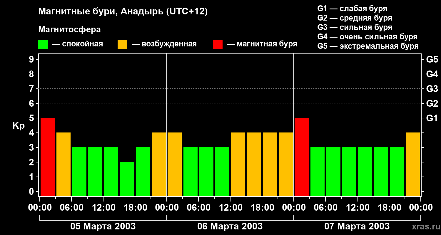 Магнитные бури в Анадыре — 7 марта 2003 года
