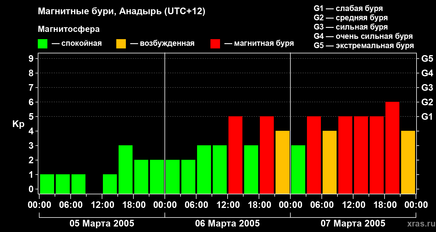 Магнитные бури в Анадыре — 7 марта 2005 года