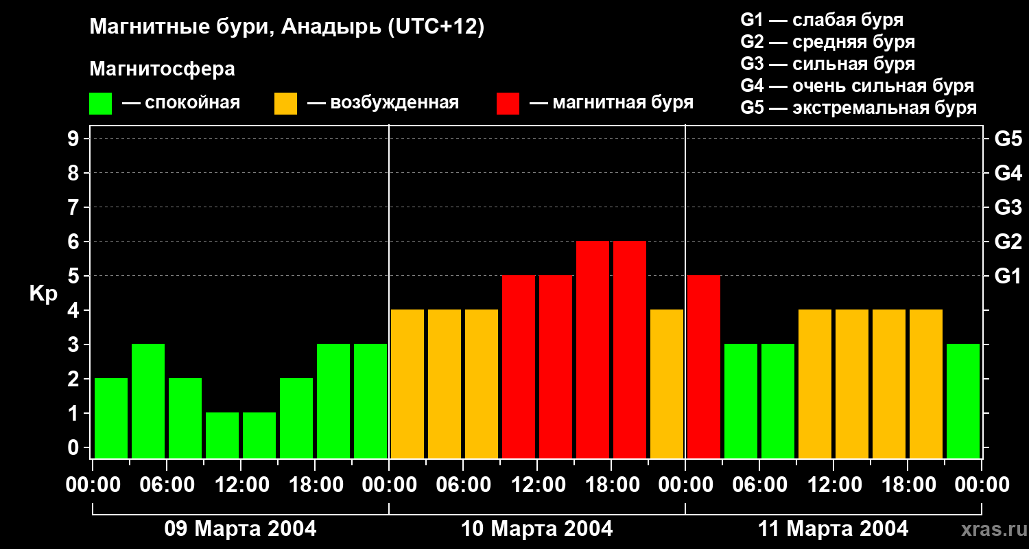 Магнитные бури в Анадыре — 11 марта 2004 года